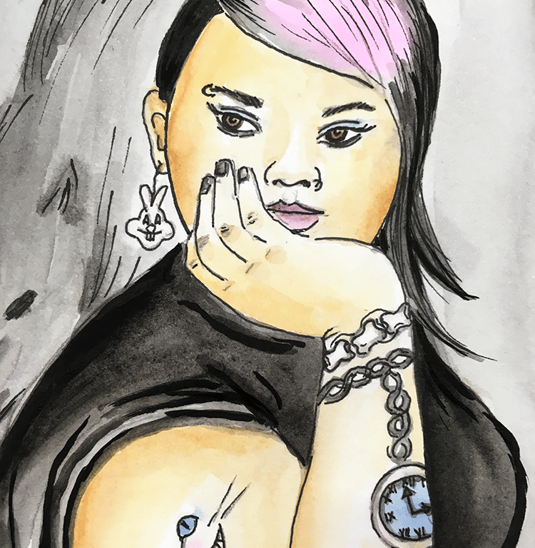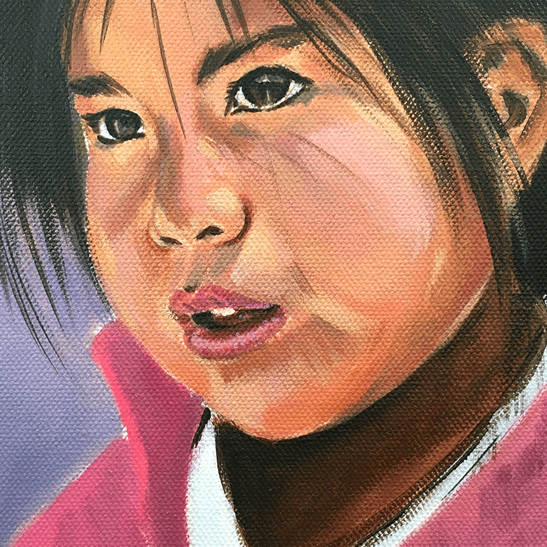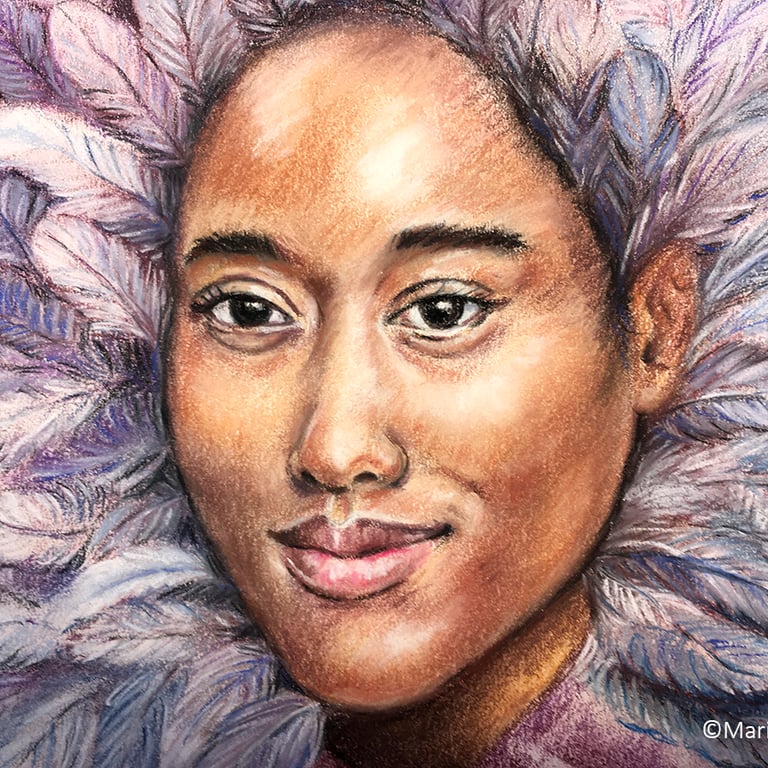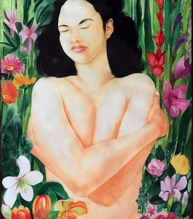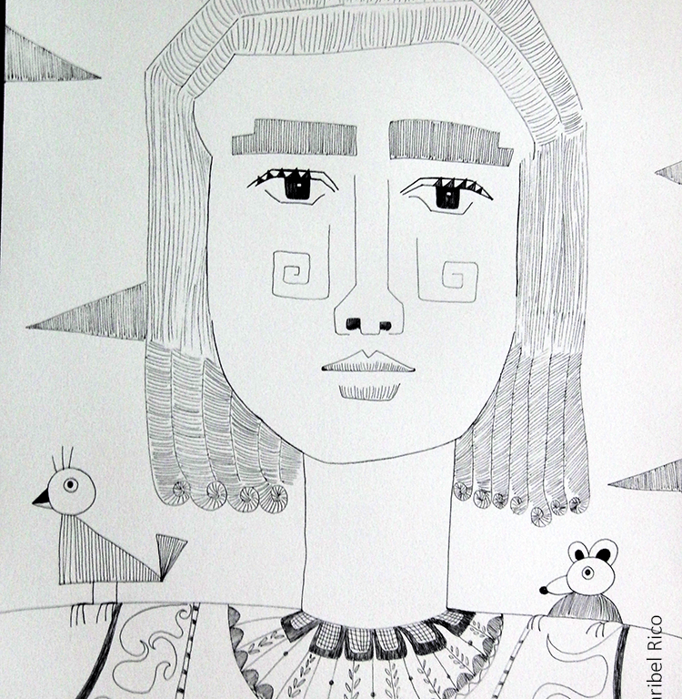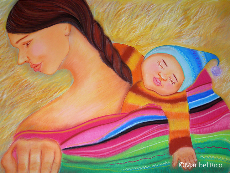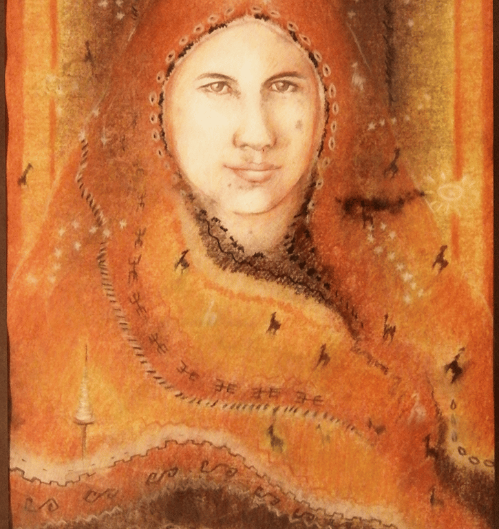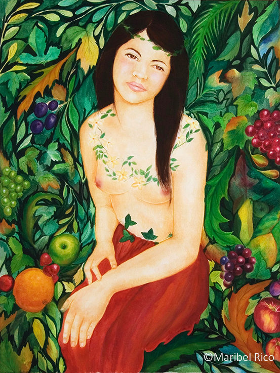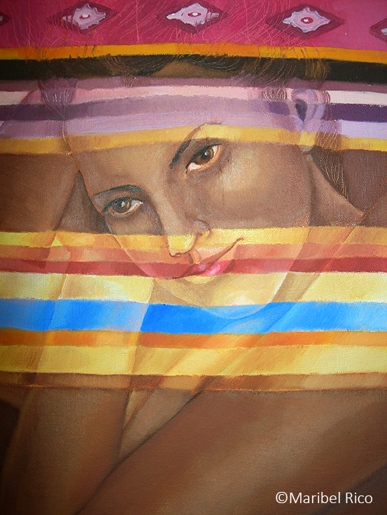 Varias pinturas que conforman la colección de la obra, tienen el rostro de mujeres, jóvenes, niñas y madres, que tejen un lenguaje visual que mira de frente a la experiencia vivificante de estar rodeadas por espíritus guía como el jaguar, las aves amazónicas y las latitudes simbólicas de los awayos andinos.